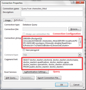3. Then it will shows Connection properties window and click on the Definition tab. Inside that tab, it has Connection properties and query