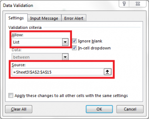 1. Create new drop down list to use as selection. Click on any cell, then go to Data tab, choose Data Validation. Choose Type List and