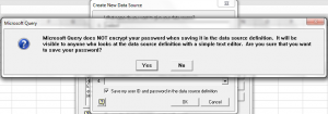 It will bring us back to Create New Data Source popup window. Optional step, you can choose to save User ID and password for this datasource setup.