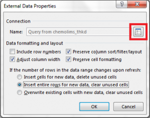 2. Select cell that have the query record, then inside Data tab, choose the properties to change the query properties. Then click on Connection