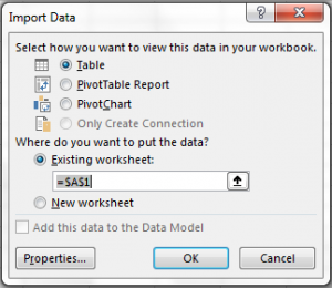 Another window will appear asking on how we want to show the record inside Excel sheet and asking where do you want to populate the record (eg: in sheet 1 cell A10).