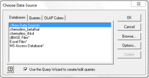 Then a popup window will appear asking for data source connection. Choose <New Data Source> and click OK.