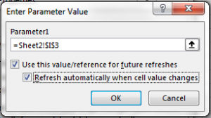 Excel can also accept query with parameter. To use this feature, you need to insert question mark (?) inside the query. It will detect