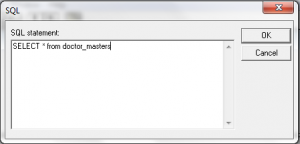 Choose SQL option and insert this query: SELECT doctorid, doctorname, qualification, gpsp, specialistin, doctorcode FROM doctor_masters where doctorname = ?