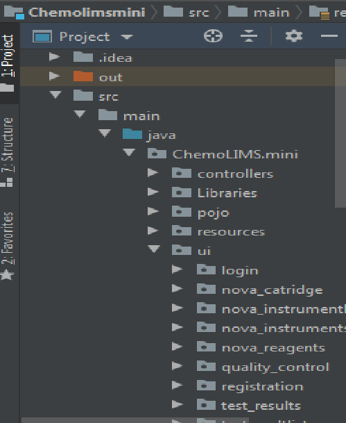 Each page in the application will have a FXML file and related controller file. We can find all the controller java files in the following path. Path => Chemolimsmini\src\main\java\ChemoLIMS\mini\ui.