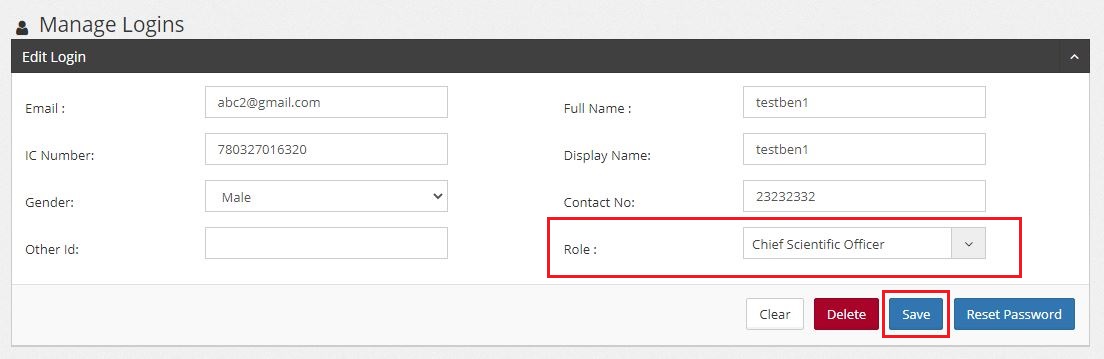 To change the role of user, look for Role on the form, and choose another role from the dropdown / list selection. Once complete the editing, click “Save” button for update.