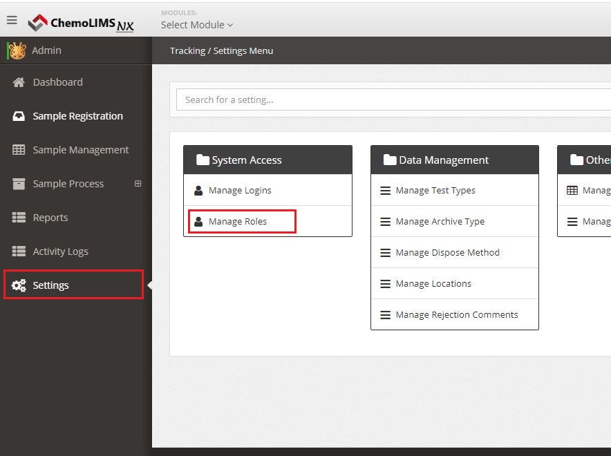 Now move to UI/UX, login as Administrator account and to completely install permission into the selected module, navigate to Settings > Manage Roles.