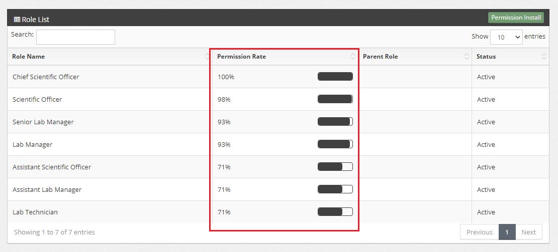 – Permission Role represent how many percent of action can be perform on the role.