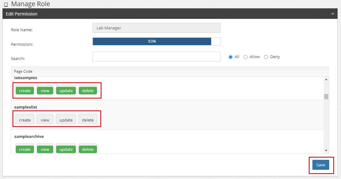 – Click the button one time and change to green color, permission will be Activate and allow the role to take that action.